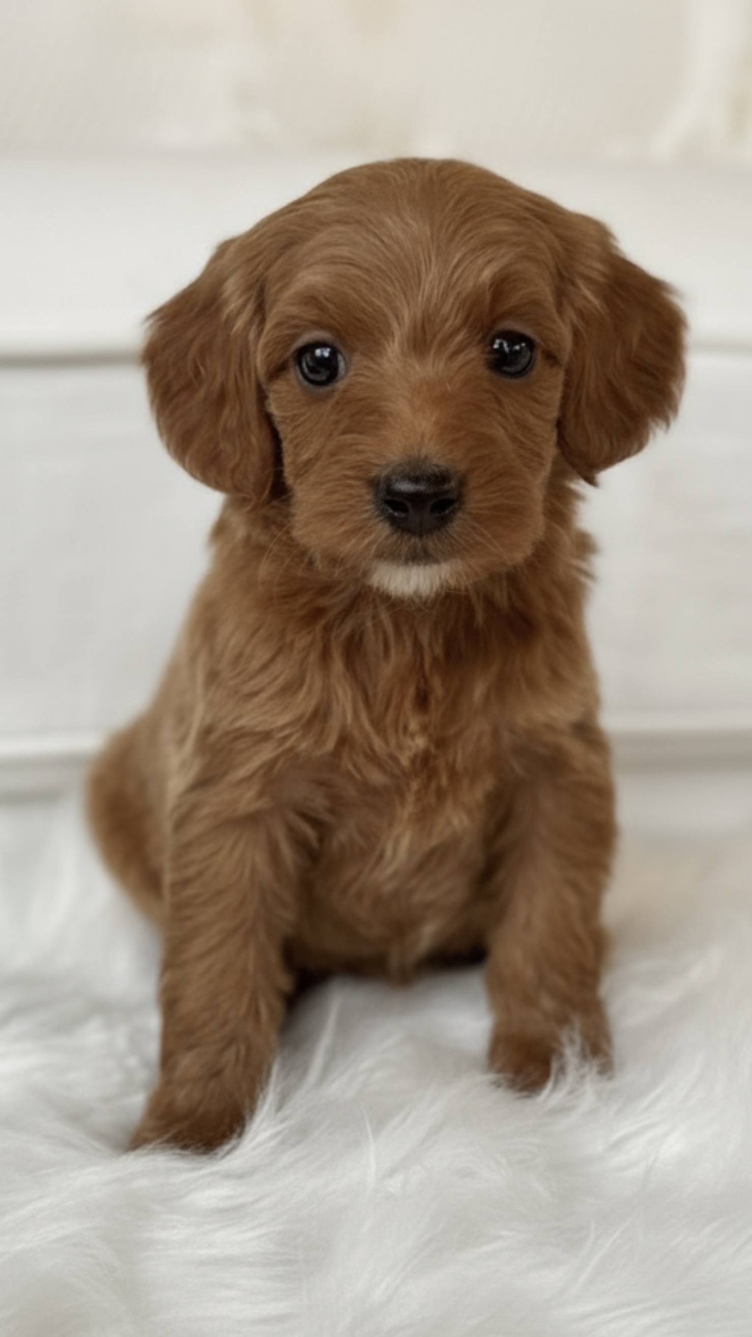 With Brinley's beautiful coat, she'll have puppies with soft, fleecy, apricot and white coats. Brin's puppies will have a shaggy to soft curly coats that will be excellent for producing non shedding, hypoallergenic Doodles, and with her loving and loyal temperament we are sure to have the same in her puppies.